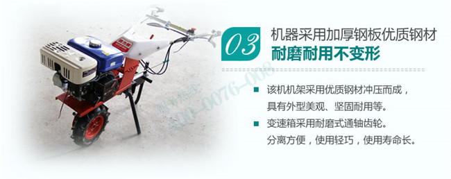 2、目前市場上輪距最窄的田園管理機,最窄輪距可以達到8厘米,獨輪、雙輪變換使用,只要有很小的空間,就可以發(fā)揮管理機最大的優(yōu)勢。